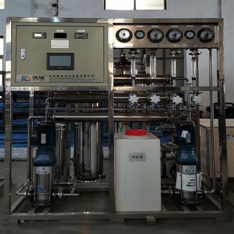 经过进水系统后的水被压力泵送到RO膜组件中,在RO膜的作用下,水中的离子、微生物和悬浮颗粒等杂质被过滤掉,而纯净水则通过RO膜流出。同时,设备还配置了自动冲洗系统,可定期清洗RO膜以保证其正常使用寿命。