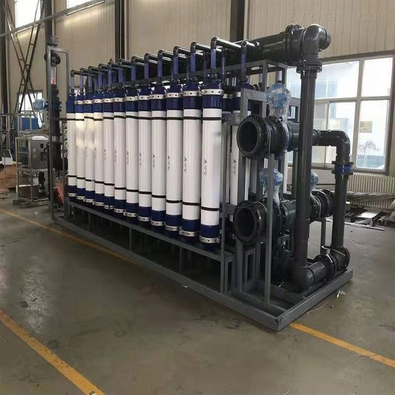 原水→原水箱→加压泵→多介质过滤器→精密过滤器→中空超滤设备→超滤水箱
