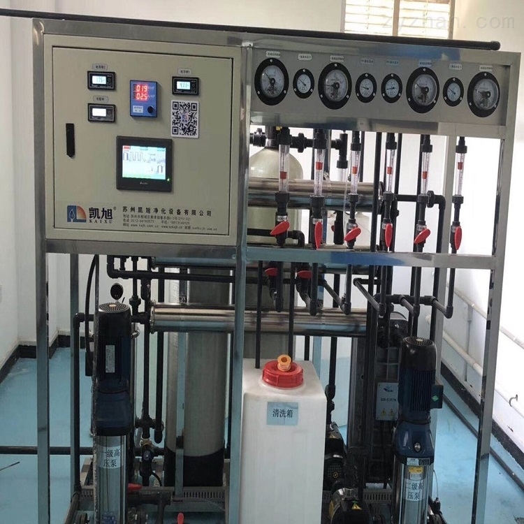凯旭超纯水设备二级反渗透系统出水电导率≤2-5μs/cm(25℃)进入EDI系统, Electrodeionization 简称EDI是将电渗析膜分离技术与离子交换技术有机地结合起来的一种新的制备超纯水(高纯水)的技术,它利用电渗析过程中的极化现象对填充在淡水室中的离子交换树脂进行电化学ZS,再通过抛光混床系统达到电子级用水标准即电阻率≥18.2MΩ·cm(25℃)。